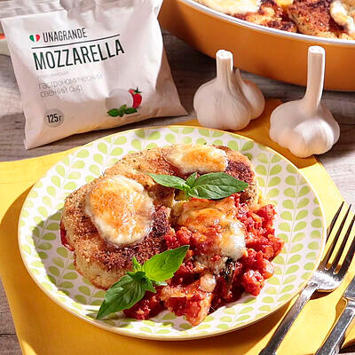 Моцареллу нарежьте кубиками. Достаньте форму с «ракушками» из духовки. Фольгу снимите. Распределите сверху моцареллу и запекайте 5 минут при 200 °С.