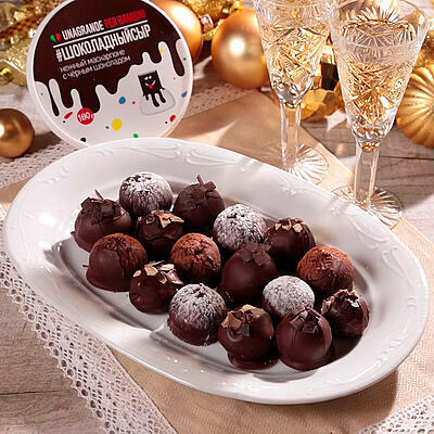 Шоколад растопите и дайте немного остыть. Шоколадные шарики полейте шоколадом. Посыпьте арахисом, сушеной малиной, солью.