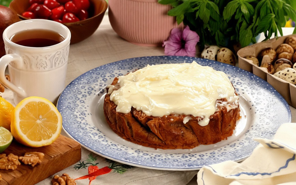 Переложите морковный торт на блюдо, покройте глазурью, дайте глазури немного застыть, затем нарежьте на порции и подавайте.