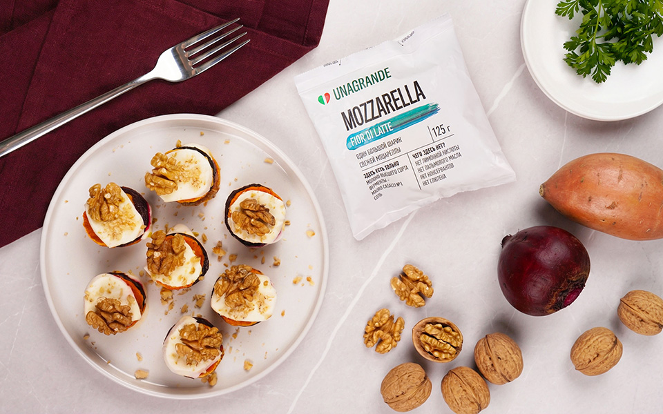 Посыпьте грецкими орехами (предварительно можно слегка обжарить), при желании сбрызните лимонным соком или бальзамическим соусом. Украсьте свежей зеленью и подавайте сразу.